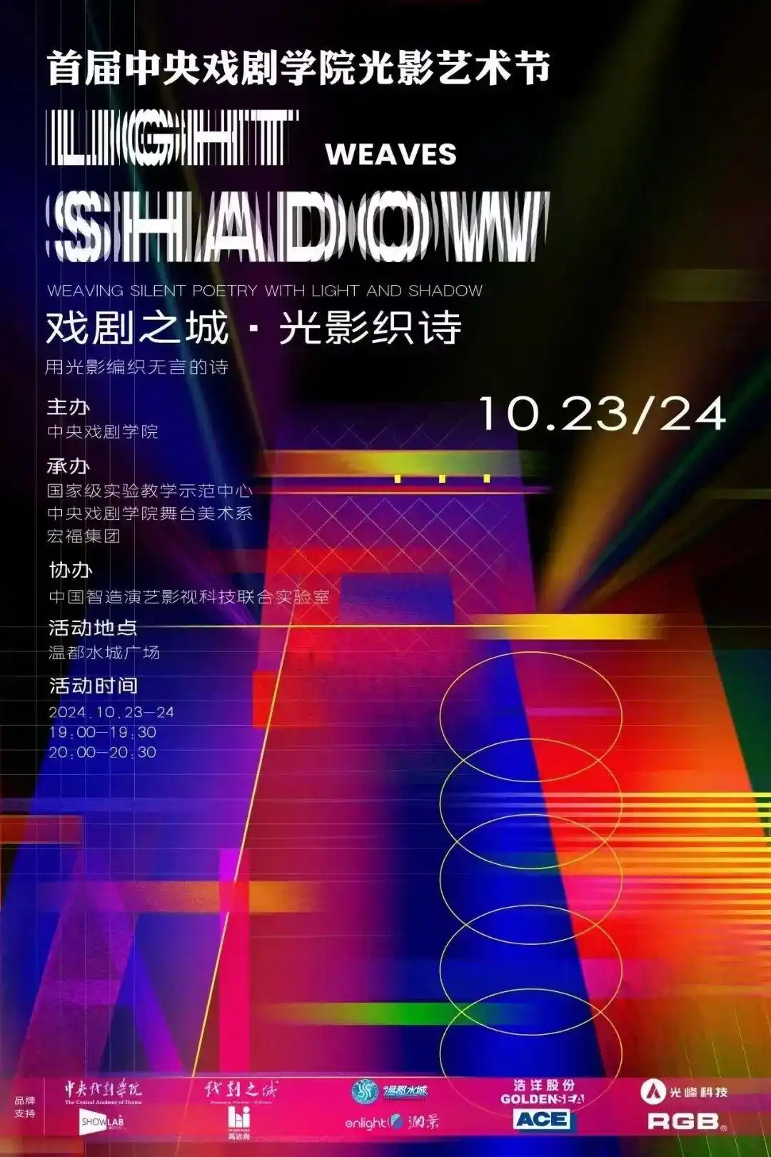 本次活动由中央戏剧学院国家级实验教学示范中心暨实践教学中心、中央戏剧学院舞台美术系联合主办,依托中央戏剧学院 “中国智造演艺影视科技联合实验室” 平台的优秀国造企业,携手校外实践基地 “北京戏剧之城” 共同打造,是中央戏剧学院师生首次在户外大型场地展示的演艺科技艺术成果。光影秀以 “自然与生命” 为核心主题,以 “北京戏剧之城” 为艺术载体,通过灯光与自然景观元素的深度融合,营造出独具诗意的光影氛围。