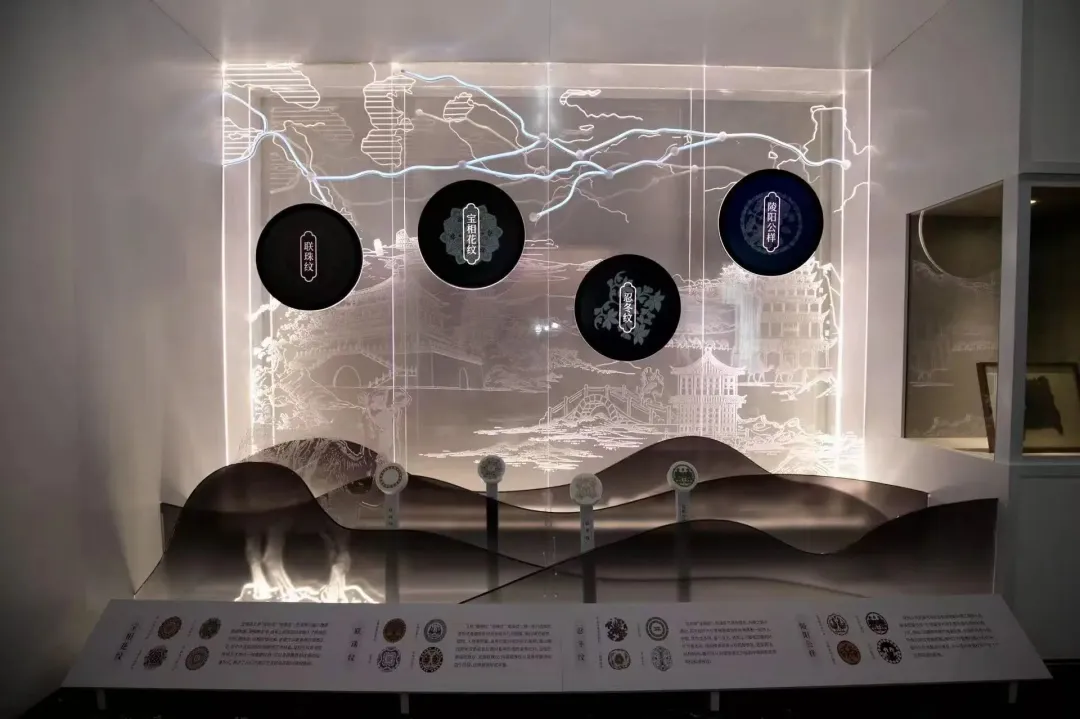 梅兰竹菊的君子之风,云纹水纹的生生不息,龙凤呈祥的美好祈愿…让沉默的纹样开口诉说千年故事。展览以文化故事为根基,将实物展品与数字技术完美融合,在每件展品中植入深度的文化解读,让沉睡千年的纹样真正“活”起来。