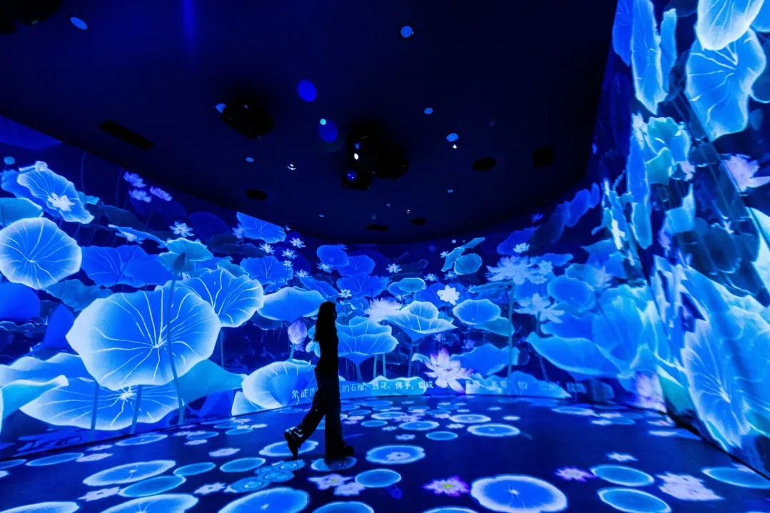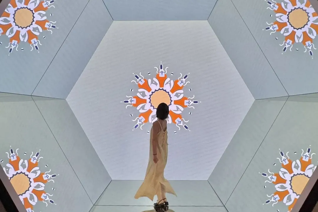 走进苏州丝绸纹样数字馆,仿佛踏入一个由光影、数字与丝绸共同编织的奇幻世界,引领观众在流光溢彩中深入解读苏州文化中独有的美学叙事。