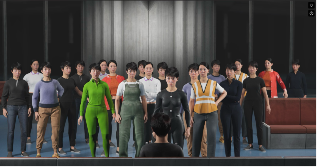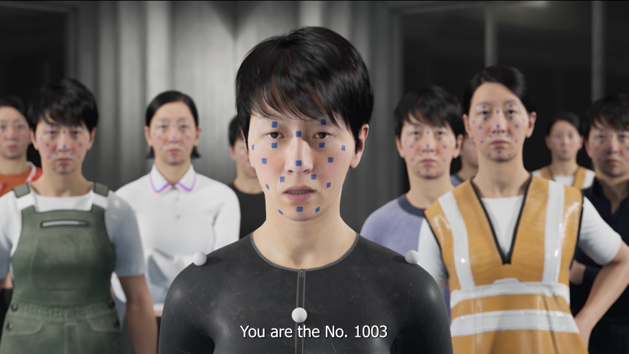 2025年林茨电子艺术节动画单元杰出奖作品《The Cast of the Invisible》(隐形的演员)成为一个具代表性的案例。该项目的作者刘卫(lau wai)是一位生活工作于纽约和香港的多学科艺术家。实践涉足动态影像、3D动画、数字交互媒体、摄影和装置艺术。她的创作常常以穿着动捕服的数字人作为主体,影像通常以CGI技术创作。以数字人身份的困境为主题,通过数字人对“主体性”的探讨,折射出技术社会中身份与存在是否具有真实性的复杂关系。