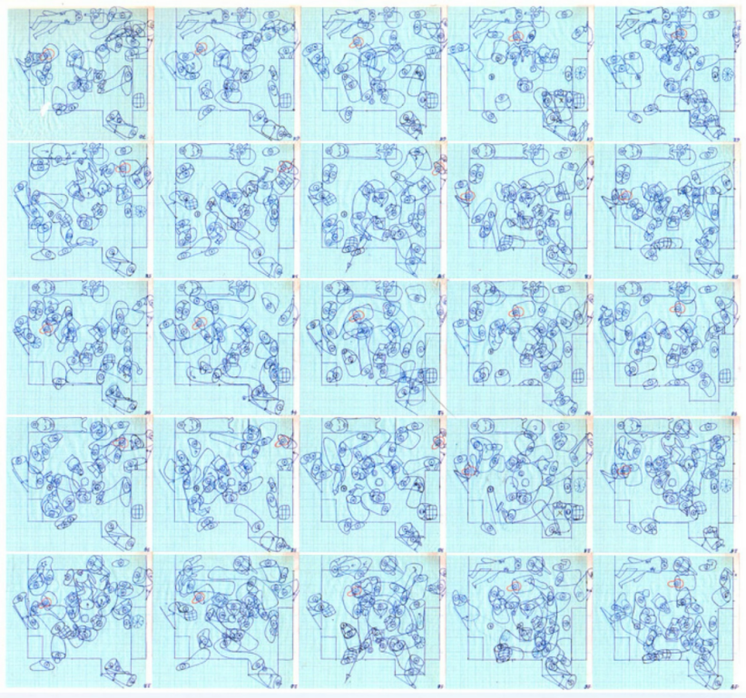 影片以一个空房间开始:木地板、窗户、门和一张床。随后,一名小孩走进房间捡球离开。接着,不同的人陆续进来——女人喂婴儿、男人脱衣服睡觉、老妇人清理、青年偷东西……每个角色都重复着自己的动作循环。随着影片推进,这些循环动作叠加在一起,几十个角色的行为同时在这间小房间中进行,却互不干扰。房间逐渐变得“满”,但每个个体依然只关注自己的轨迹。影片最后,这些人物依然在重复自己的动作,仿佛时间凝固,空间被行为所填满。