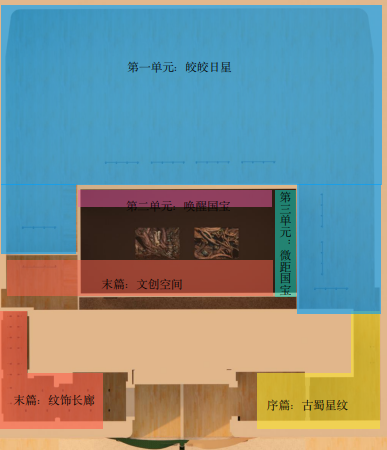 入口金色:三星堆文物原始金色,象征穿越回古蜀时期;