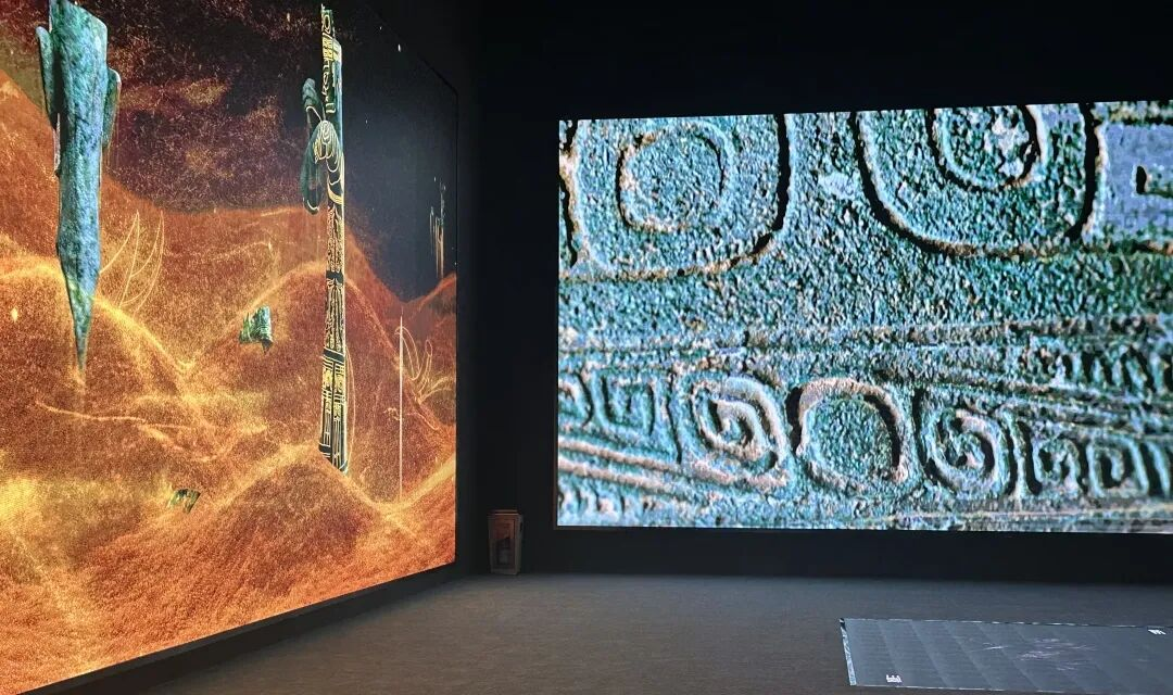 “我们设计了第三个独特的视角——微观视角。此单元采用了12K超高清拍摄技术,哪怕是一件10厘米的三星堆文物,也能被放大至5米,观众可以清晰地看到那些在博物馆隔着玻璃柜无法察觉的细节,比如古代匠人留下的刻痕,甚至可能从中发现新的历史线索。”——策展人王泊乔
