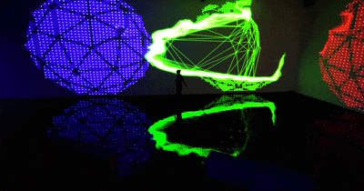Miguel Chevalier说:“细胞时快时慢地大量繁殖、分裂、合并、激增。一切聚集又分散,极速地改变着形状。这些有机的宇宙有时会与由像素搭建的建构主义世界交汇在一起。”
