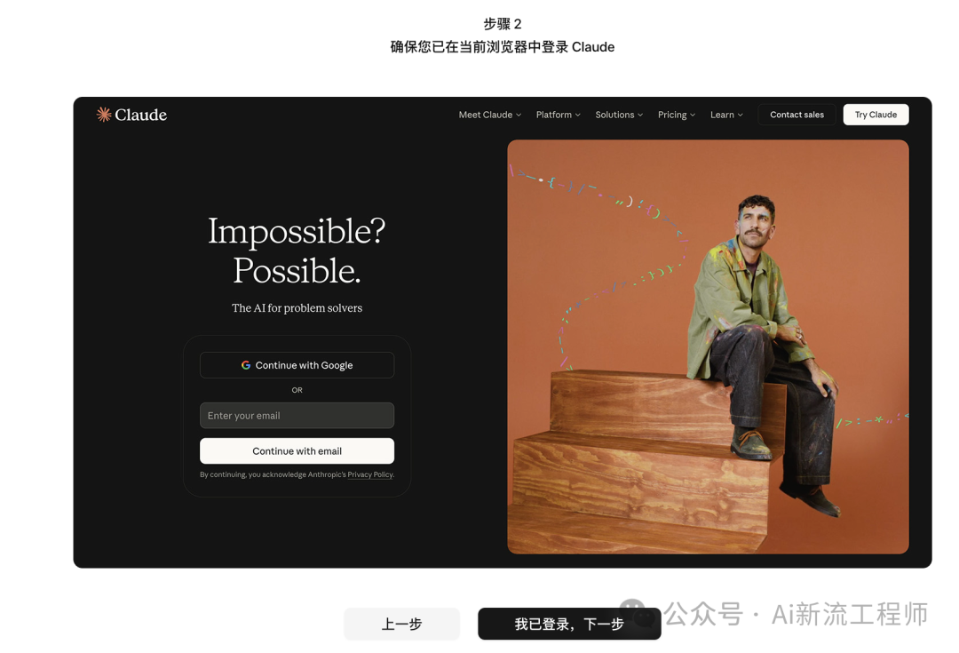 打开https://claude.ai,填写自己的邮箱,填写好之后,它会给你发一封邮件。