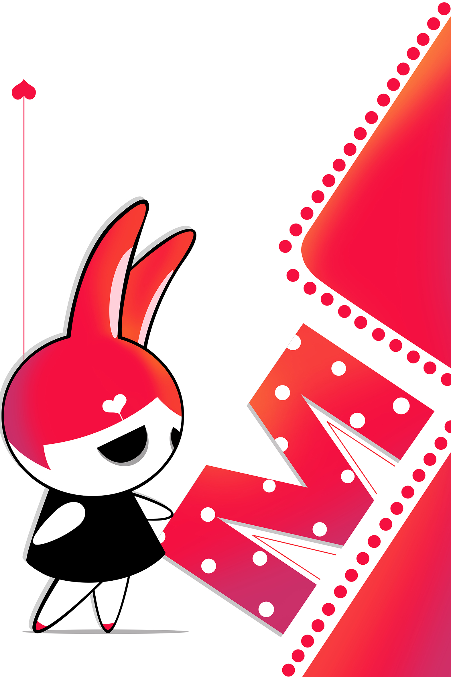 标志性半圆眼(丧萌)、玫红/黑/白高识别度色彩。