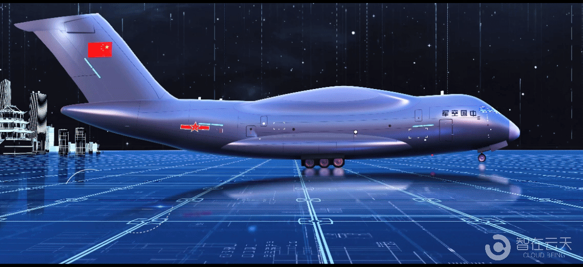 3D Mapping让这架坐落于西安中国空天文化研学乐园的运20大型运输机模型,在数字艺术中展翅腾飞。