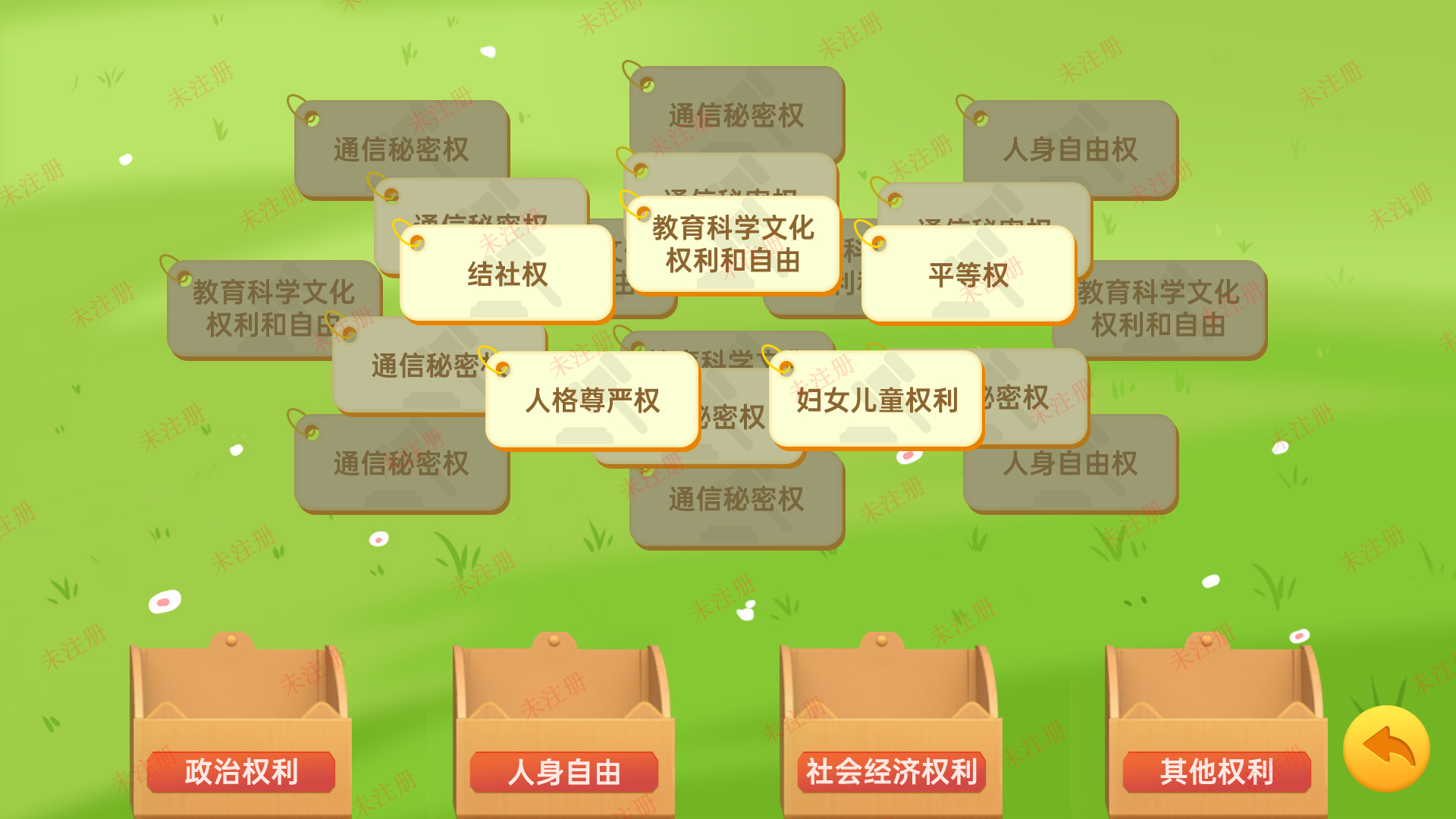 权利与义务板块则通过视频与分类游戏双管齐下。用户需将各项权利正确归类,在互动操作中明晰公民权利边界与义务要求,让抽象的法理转化为具象的认知,真正实现学以致用。