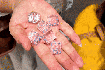在《PLAY》现场,观众化身“赌神”:掷出1–6六个不同数字(概率仅1.6%),就能免费获得一套透明树脂骰子,还能现场找艺术家签名。所有被掷出的3D打印骰子,都会在展位左侧的透明容器中不断累积,成为一件不断生长的“时间雕塑”。