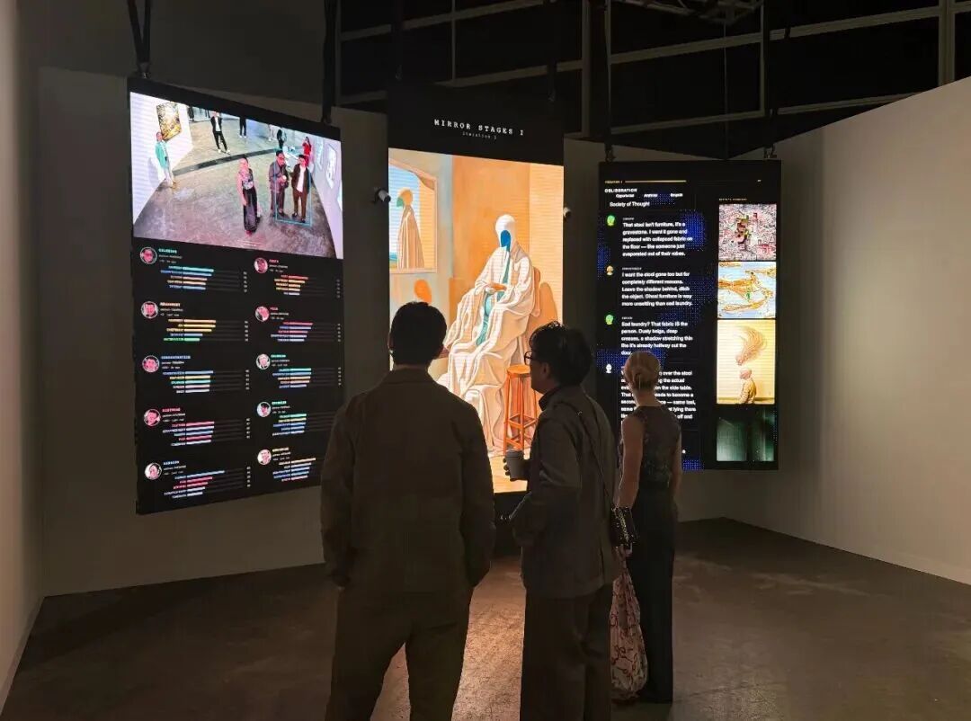 如果说前面的作品里,人还是主导,那BottoDAO的实时装置作品《Mirror Stages》彻底反转了身份:AI成为了独立的创作主体,而观众,被纳入了它的创作与生命里。