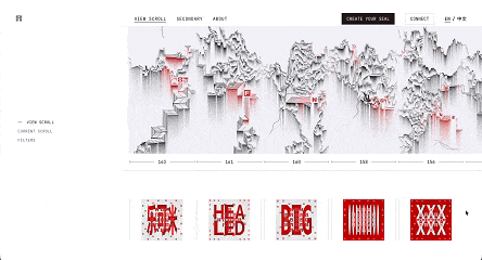 更有趣的是,印章的“稀有度”由藏家自己的钱包决定——收藏越多、交易越活跃,印章就越大,卷轴里属于你的红色脉络也越鲜明。这是对收藏行为本身的美学化呈现。