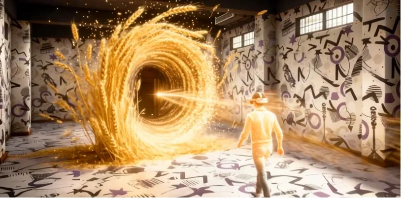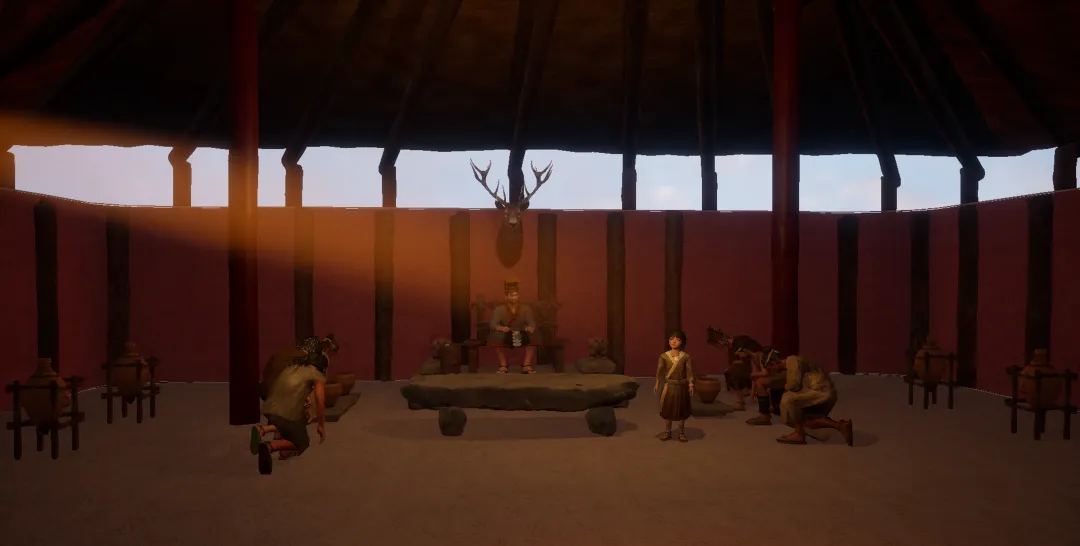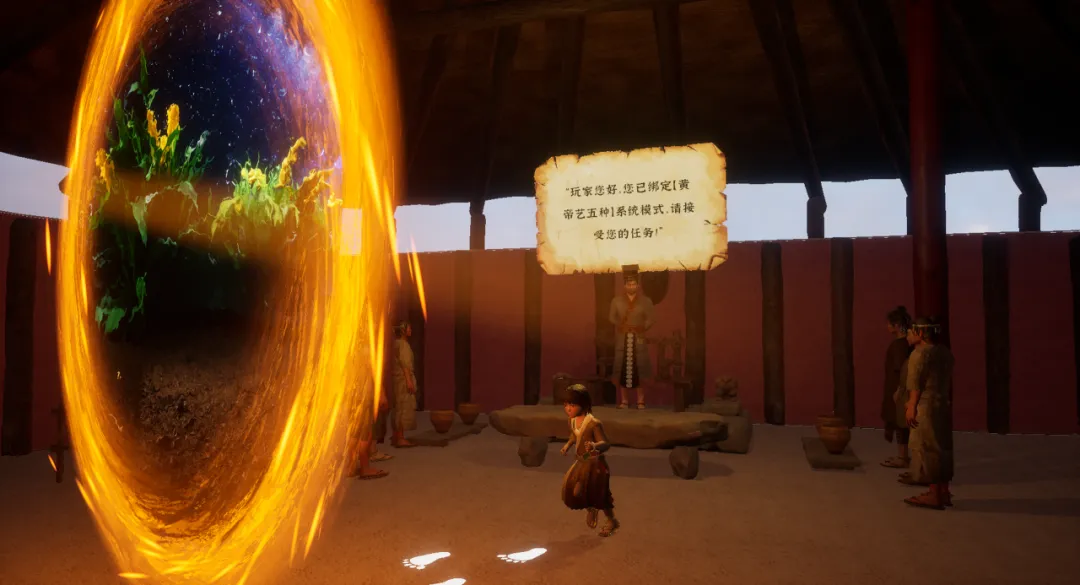 步入仿西坡遗址的"大房子",黄帝宣告五谷遭劫,发布护谷任务。体验者因系统故障切换至蚁人模式,开启微观护谷之旅。