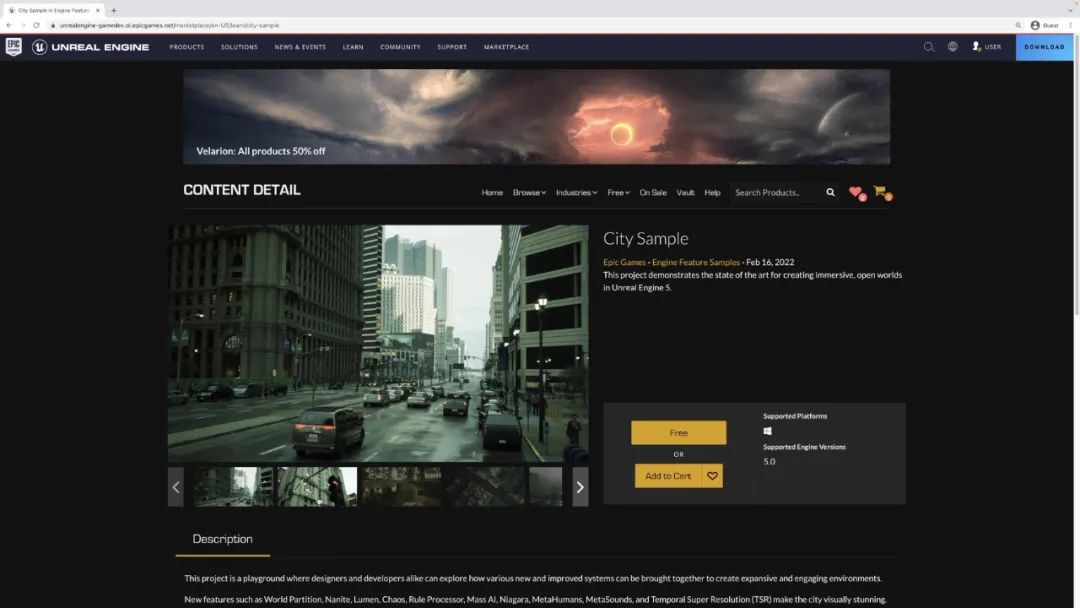 https://unrealengine.com/marketplace/learn/city-sample