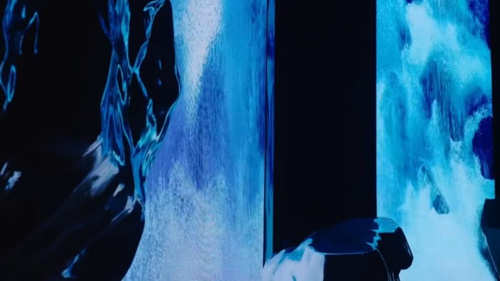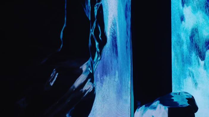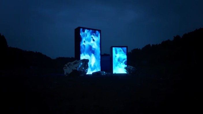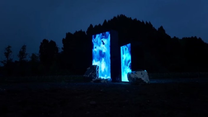 《涌·石 Stone Whisper》是刘佳玉工作室2024年创作的一件置身于自然山谷之中的新媒体装置艺术作品,作品落于四川资阳国际数字游民社区。作品是两个精心放置于山谷草甸的显示屏,巧妙地将技术与自然的结合,创造出一条流动的虚拟河流,象征着文化之间的不断交融和流动。这条河流不存在于物理世界中,却在观者的感知里清晰地流动着,它跨越了实体与虚拟的界限,流淌在一望无际的绿色草甸上,似乎是未来世界的符号。当虚拟河流在这些岩石之间流淌时,映射出的光影和色彩在岩石表面跳跃、反射,营造出一种动态与静态、虚幻与现实交错的视觉效果。