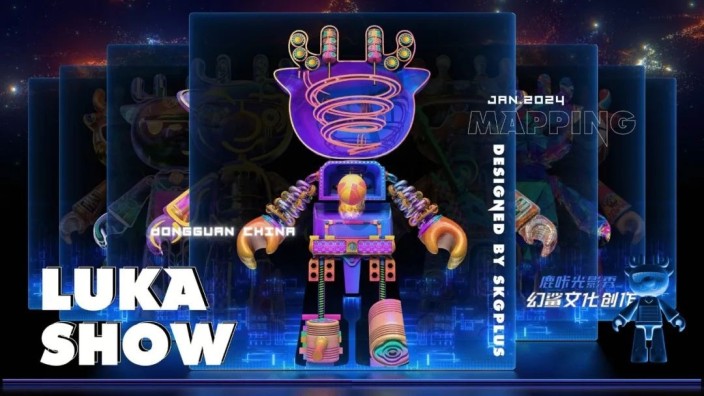 2024年1月17日,国家级AAAA景区东莞龙凤山庄上演了一场关于光、知识与艺术的奇妙碰撞——以高度超19米、自带赛博风格的巨型金属机械活动式雕塑“鹿咔(LUKA)”为投影主体的主题奇幻光影秀正式首演。雕塑“鹿咔”由佳乐专积木研发设计,在智能科技的操控下,其头部、双臂、手腕均可灵活转动,尽显机械灵动之美。沉浸式3D Mapping秀由幻鲨文化SKG+创作,搭配澜景科技Hirender全媒体总控系统的技术支撑。随着夜幕降临,潮酷的3D投影唤醒机械LUKA,上演精妙绝伦的沉浸式光影秀,带来一场潮流艺术的视听盛宴。多方共同构建夜游潮流舞台主阵地,共创东莞潮流文旅新地标。