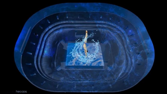 “活力成都 城市涅槃”Mapping Show落地成都凤凰山体育公园,作为科技部重点专项“高新视频-沉浸式视频系统在文体影视领域的应用示范”的重要成果,该项目由中广电设计研究院牵头,联合天津美术学院、北京澜景科技有限公司、北京海蓝威视科技有限公司及中广建融合(北京)科技有限公司共同实施。项目紧扣 “成都、城市、运动、青年、未来” 等关键词,特别携手 “摩登天空” 玩山乐队,将古蜀文明与当代体育精神创新性相结合,为成都大运会预热,推动沉浸式视频在文体影视领域的高质量创新发展。项目采用国际领先的透视投射技术,在场馆现场实现了基于人眼透视原理的裸眼3D效果,带来极具冲击力的视觉体验。