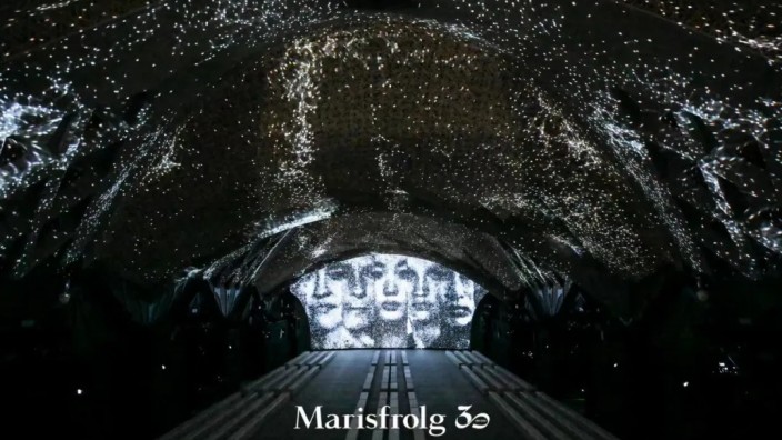 2023年9月15日,深圳时装周2024春夏系列的开幕重头戏——Marisfrolg三十周年时装大秀在大浪时尚小镇玛丝菲尔大厦震撼上演。这场大秀由Marisfrolg联合法国艺术家Yann Nguema共同打造,将时尚与艺术巧妙融合。随着音乐渐起,秀场穹顶之上一株青苔逐渐绽开,充满生命力的向整个穹顶蔓延,沿着秀场空间的壁檐向四周生长,轻缓细腻地掠过美妙的艺术建筑线条。随后青苔演化成具象的植物叶片、绽放的花卉和飞跃的动物,由点至面覆盖住将近1500平米的穹顶,延伸到秀场的背景。整个动态视觉过程呈现着生命的演变之美,为时装秀增添了极具感染力的艺术氛围。