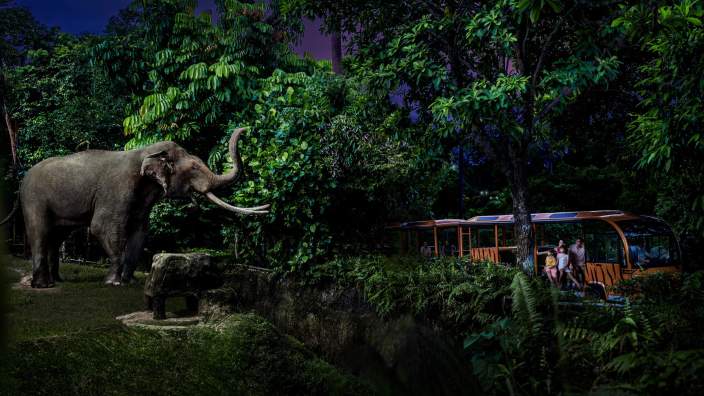 1994年,新加坡构建了世界上第一个专为夜间活动的动物而建造的动物园,这也是全球首家于夜间供游客游览的野生动物园,每天18:30开始营业,直到子夜0:00闭园,完美贴合夜行动物活动规律。动物园给超过100个品种、近900种夜行动物提供栖息之地,其中有41%都是濒危动物。为了保障野生状态的生存环境,新加坡夜间动物园基本没有路灯,当你的眼睛逐渐适应黑暗环境后,就能逐渐辨别出游荡在森林里的野生动物。除了4条徒步路线可以一览世界各洲动物的夜间生活外,当暮色笼罩整个新加坡夜间野生动物园时,开放式的小火车沿着世界首个专为夜行动物设计的观察轨道缓缓行驶。车内亮着柔和的光芒,既保障了夜间视野,又不会惊扰沿线动物的自然活动节奏,为您开启一段长约3.2km,用时40min的沉浸式生态之旅。
