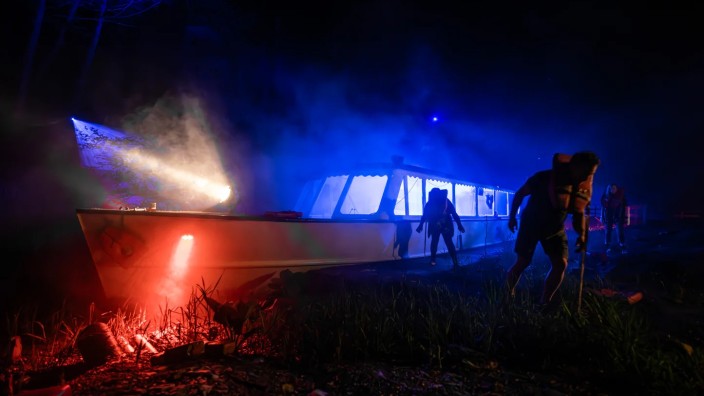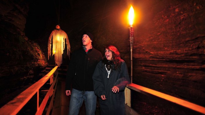 全球知名多媒体创意工作室Moment Factory于2025年与美国著名景区威斯康星德尔斯(Wisconsin Dells)携手合作,推出了全新夜游项目——《Ghost Boat at Dells Boat Tours(幽灵船传奇之旅)》,为游客带来沉浸式恐怖体验。此次项目的核心亮点是对1950年因不明原因封闭的冷水峡谷(Cold Water Canyon)进行重新开发与开放,尘封多年的冷水峡谷打造为该夜游线路的核心场景,游客在光影与音效中仿佛穿越时空,置身于传说所描绘的神秘年代。整场夜游体验时长约1.5小时,由“乘船游览”与“峡谷徒步”两个部分构成,天然的地貌为黑暗故事营造出真实感十足的舞台。 船舱内部经过沉浸式布景处理,布道也布设了大量基于传说故事的视觉与声音交互装置,通过动态灯光、视频投影、空间音效与真人演员实时互动等手段,营造一系列扣人心弦的“惊悚时刻”,让游客全程沉浸在紧张刺激的氛围中。