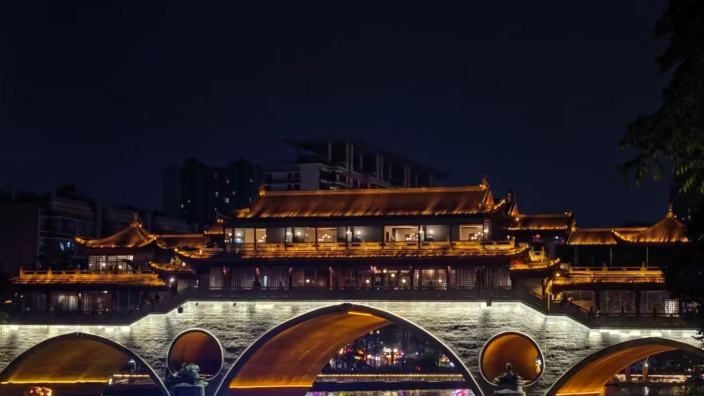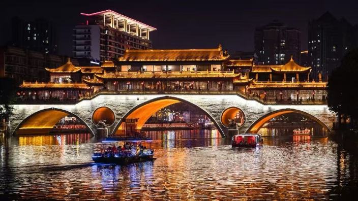 成都以锦江千年生态人文为基底,创新推出“夜游锦江”文旅融合项目,以锦江为脉,串联东门码头、九眼桥、江滩公园等核心节点,“一码头一场景”的差异化设计,打造出集文化、商业、科技于一体的沉浸式夜游体验。“夜游锦江”的游船有多重体验,水上火锅船、MR(混合现实)数字游船、锦江茶舫等,以文化科技赋能场景创新。项目融合还古刹墨宝、川剧变脸、市井美食等元素,结合全息投影、智能灯光等技术,形成“老成都、蜀都味、国际范”的旗舰级城市阳台,将成都千年商贸文化与现代潮流生活深度融合,成为展现天府文化魅力、激活夜间经济的标杆性文旅项目。