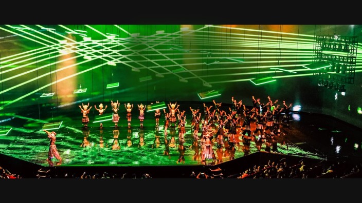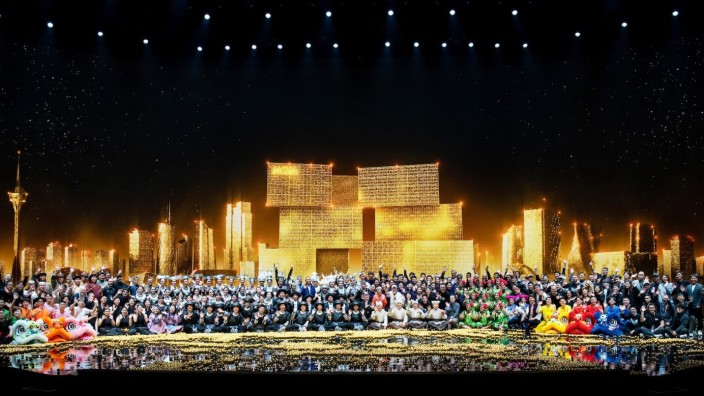 为深情献礼澳门回归祖国25周年,张艺谋导演的首个驻场大秀《澳门2049》于2024年12月15日在澳门美狮美高梅-美高梅剧院隆重首演。演出以新颖的方式展示了中国非遗文化的独特魅力,为澳门演艺注入了新的活力。《澳门2049》舞台剧由八个中国传统非遗技艺与高科技舞台创意组成的单元构成,分别为神鼓·影子、呼麦·飘渺、苗歌·空灵、岔口·面具、秧歌·数控、彝声·海洋、美狮·光芒及唱书·源起。演出时长80分钟,充分运用遥控编程机械臂、AI影像制作、仿生飞行器等高新技术手段,原生态地展现了西北花儿、蒙古呼麦、苗族古歌、京剧、北方秧歌、彝族彝声、中华舞狮、陕北说书等8种中国非遗文化,观众将穿越千山万水,亲身感受中国各地的风土人情。