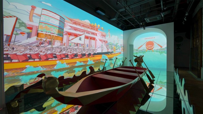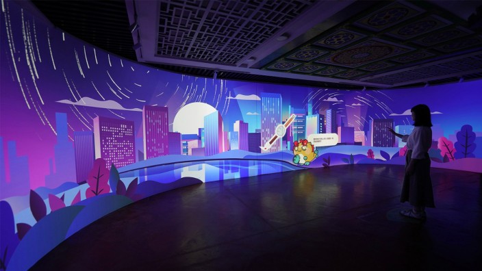 2023年3月23日,南海风物美学空间(风物方志馆)在?岗山顶的魁星阁正式揭幕。升级后的魁星阁以“打造最好玩的方志馆”为核心目标,CT.LAB团队运用当下前沿数字技术结合南海千年历史文化发展,重现南海的人文风情和生机蓬勃的城市精神。步入方志馆内部,巨大的180度碗状配合立体沙盘模型,顶部镜面设计进一步拓展空间感,结合3Dmapping技术形成一个沉浸式的氛围体验。沿着展现南海发展历程的历史长廊,团队利用现代AR技术实现定点的信息展示,生动地还原了不同时代的经济生产模式。此外,馆内还设有以“龙舟唱晚”为主题的沉浸式互动影院,通过技术让观众真切感受龙舟竞渡的热血与激情。