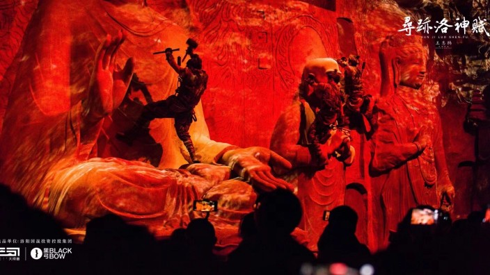 “光影河洛·极致之美”。中国首部数字行浸演艺——《寻迹洛神赋》是河南省重点文旅建设项目,由北京冬奥会开幕式视效总监王志鸥担任总导演,北京冬奥会开幕式视效总制作团队黑弓BLACKBOW担任总创制方。《寻迹洛神赋》坐落于洛阳大河荟,总建筑面积18.4万㎡,由数字行浸演艺、“博物馆+”商业、隋唐文化主题酒店、剧本娱乐孵化基地四大业态组成,现已成为汇集洛阳千年文化的文旅产业标杆。项目以“洛阳神韵”为精神符号,以河洛文化为主线,综合运用AR、VR、裸眼3D、艺术空间造景、水景特效、多维感官设计等创意手法,以多媒体、声光电等高科技为展示手段,以沉浸式演出、互动表演等为体验方式,开创了国内首个展、演、秀融合的演艺形态。观众穿梭于实景山水、数字穹顶与真人演绎之间,洛神飞天、衣袂飘飘,沉浸在跨越千年的浪漫之中,读懂洛阳的千年风华。