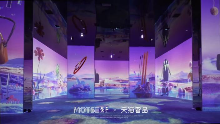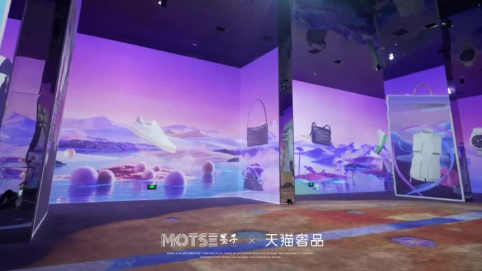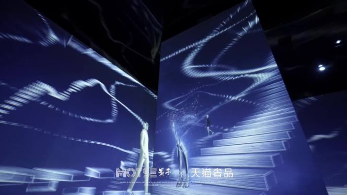 2023年9月22-23日,天猫奢品联合35个奢侈品牌在上海北外滩光沿落地“New & Beyond心生共响”数字交互光影艺术展。MOTSE墨子团队受活动方委托完成数字内容与交互程序设计制作全流程,打造一场属于奢侈品的线下沉浸式科技艺术盛宴。本次艺术展数字内容由《心生画廊》、《云奢新境》、《奢享时装》、《新生未来》四个篇章构成,除了沉浸式数字内容展演外,墙面与地面区域均设置了趣味性体感交互体验。虚实结合的艺术空间,融合AIGC技术理念、AR技术、动捕技术和触摸感应技术,以及多种艺术渲染能力,充分调动观众的探索欲和新鲜感,也打开了人们对未来生活的想象。