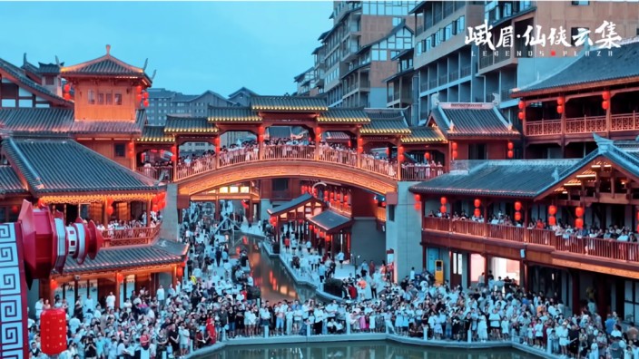 2024年8月8日,由峨眉山市印象房地产开发有限公司独资打造,数虎图像整案创制的全域沉浸式仙侠主题度假小镇《峨眉·仙侠云集》大型文旅项目正式启动运营。项目总占地面积约86亩,坐落于风景秀丽的峨眉山景区天下名山牌坊入口区域,与峨眉山游客集散中心相连,是一座集沉浸式演艺、非遗文创、休闲娱乐、研学体验、夜间经济等为一体的综合性旅游特色街区。项目挖掘峨眉山的武侠、仙侠文化,塑造峨眉武术大IP,打造了一系列的沉浸式仙侠主题演绎活动:免费区演艺节目包括舞蹈、杂技、戏剧等23个,收费区有半边廊(激光通道)、算命摊(多媒体打击乐秀)、百花楼(舞蹈演绎)、凌云茶楼(环境式音乐短剧)、灵宝工坊(互动喜剧)、峨眉灵塔(多媒体水上大秀)等内容,另外《凌云集》每天19:30开演,时长约2小时15分钟,是景区的核心演出项目。