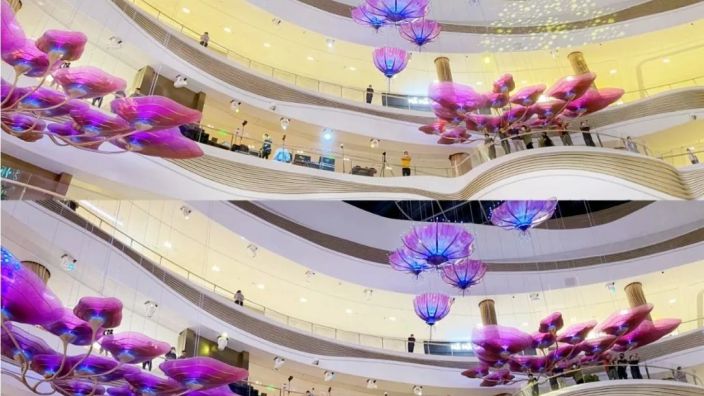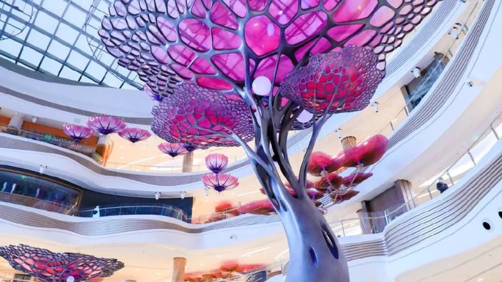 2022年10月28日,由大丰数艺与6次斩获奥斯卡最佳视觉效果奖的维塔工作室(Weta Workshop)联合打造,为Cdf海口国际免税城独家定制的史诗级主题中庭——AURA天际秘林,正式开启奇幻篇章。这一项目实力入选2024年全国文化和旅游装备技术提升优秀案例,并凭借声光电技术构建的沉浸式商业空间,斩获TEA西娅奖等国际奖项。项目深度围绕海南本土文化打造出八大梦幻主题沉浸式购物场景,核心的主题中庭装置涵盖地面树、百合树冠、悬浮叶冠、光明之树、主题屏幕、月亮桥、树鹿、主题柱、地面座椅、复杂扶壁树、主题座椅、飞天梯等元素,将常规的免税购物之旅升级为一场沉浸式文旅飨宴,带领消费者身临其境地感受梦幻海南的魅力。自开放以来,AURA天际秘林已吸引超450万游客到访,更为海南离岛免税创造了高达72.5%的贡献率,成为商业与文旅融合的标杆之作。