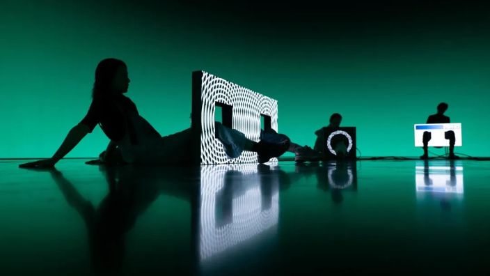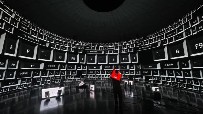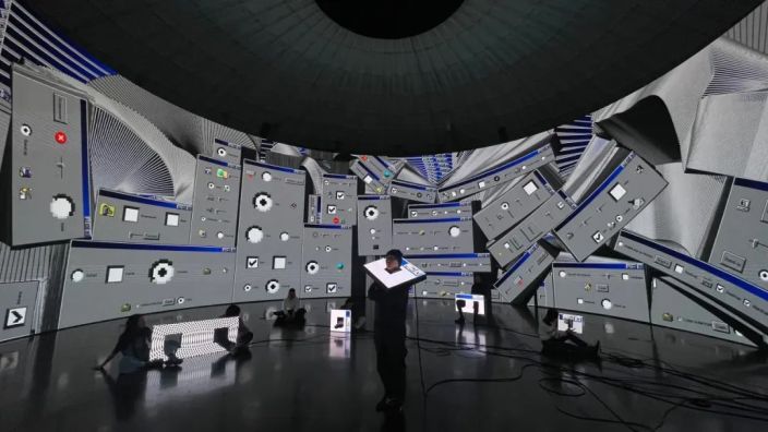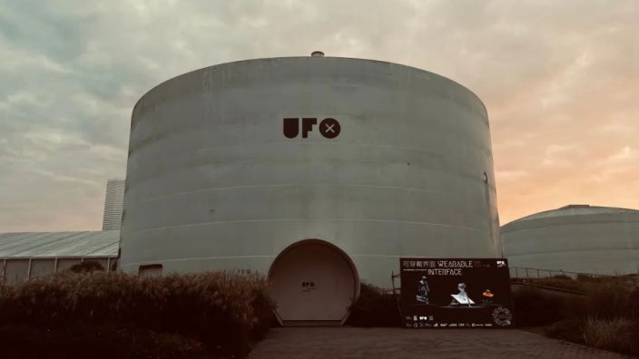 2023年受上海西岸和上海保信晴悦之邀,UFO媒体实验室以西岸油罐艺术公园1号罐为空间载体,构建了多元化的艺术场域——UFO Terminal (UFO 未知终端)。冷硬、浑圆的工业罐体如同江岸景色中巨大化的白色电子器件。封闭中空的罐内空间则与外部深度隔绝,带有抽离于现实的陌异氛围和沉浸声场,成为开展媒体艺术实验与观测的理想容器。UFO将其视作一台让创作系统通入现实的终端设备,持续输出跨越视觉、声音、身体等不同媒介的实验性作品和事件,与社会、公众相接。UFO生成出介于媒体装置与媒体剧场之间的混合界面艺术装置项目「可穿戴界面」作为首次展览。