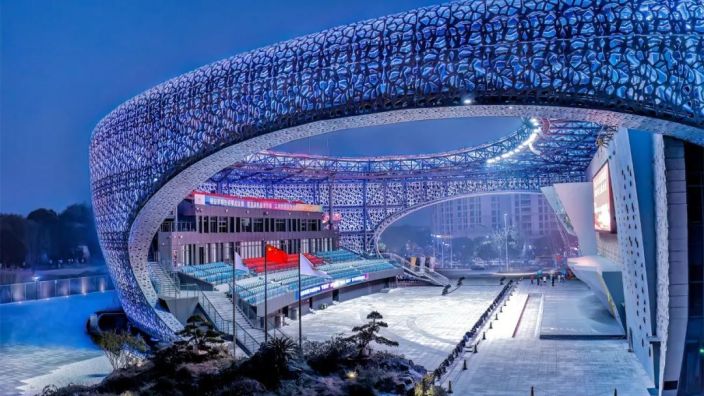 设计单位:华汇工程设计集团股份有限公司 业主单位:绍兴市柯桥区教育体育服务中心 智慧光艺:豪尔赛科技集团股份有限公司 施工单位:浙江宝业建设集团有限公司