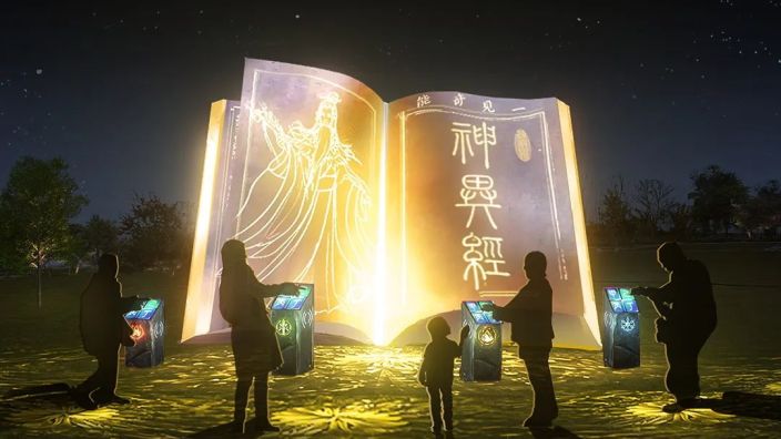 2024年8月,以“沉浸千年文化,解锁奇幻光影”为核心的全国首个虚实叠加数字光影夜游乐园——淮北朔西湖奇妙夜(亲子互动乐园)盛大开园迎客。乐园由淮北建投携手永麒科技集团打造,以淮北历史人物东方朔为核心IP,巧妙融合《神异经》文化元素以及当地特色酒文化与矿石资源,借助光影艺术、数字互动装置、AR技术、AI人工智能、虚拟现实、元宇宙等前沿数字科技,构建出一条全长3.3公里的行浸式夜游路线,让游客在移动中感受文化与科技的碰撞。项目还引入eVTOL(电动垂直起降飞行器)空中之旅,游客可俯瞰矿坑生态修复后的湖景,结合Rokid AR眼镜实现“空中 + 地面”立体游览,解锁夜游新视角。