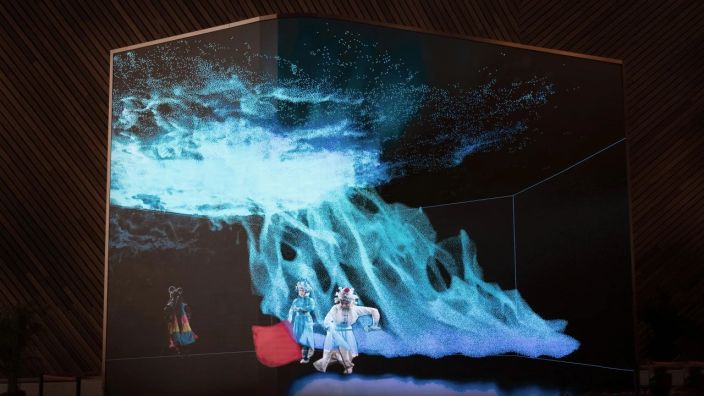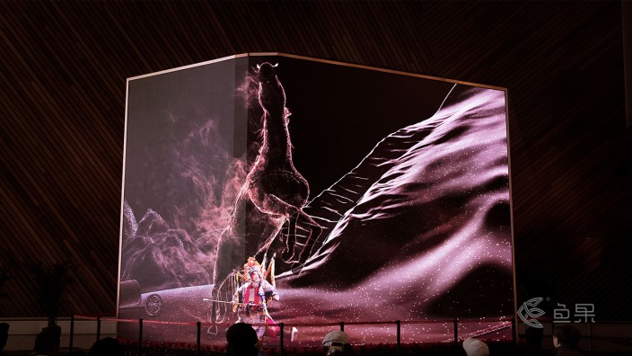 2023年12月22日,在国家大剧院建院十六周年之际,由清华大学美术学院王之纲团队、鱼果文化科技等创作的裸眼3D影片《虚戈幻境》亮相国家大剧院数字艺术展示基地暨艺·境——数字艺术展。影片通过运用裸眼3D技术展示震撼画面,与剧院形象、经典剧目和中国传统文化相结合,探索艺术与科技融合的魅力。作品选取《贵妃醉酒》《挑滑车》《三岔口》《拾玉镯》《白蛇传》等经典名段,辅助裸眼3D、AI人工智能、三维重建等技术手段演绎经典,以全新视角诠释传统京剧戏曲的艺术之美。该作品创造性的赋予每场戏不同的情绪主题与空间演绎,让观众沉浸地体验喜怒哀乐,感受装置空间、戏台演戏、戏内场景三个空间的虚实相交。它积极探索演绎经典京剧名段的新方式,并且展现了数字艺术与传统京剧文化的碰撞。