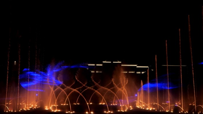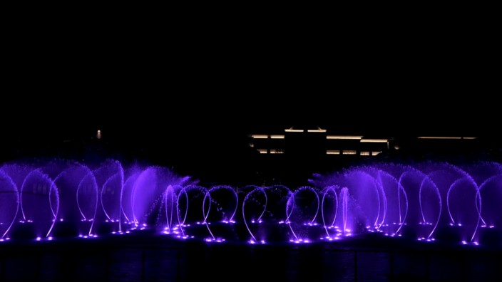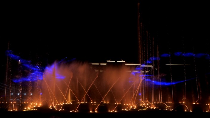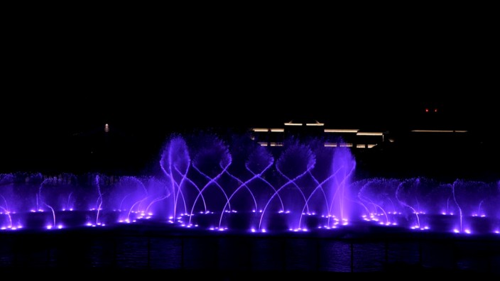 合肥滨湖文一塘溪津门水秀剧场,由G20杭州峰会、迪拜棕榈岛大型水秀项目的设计单位北京中科水景打造,总投资超5000万元,打破传统音乐喷泉概念,集声、光、水、电为一体,为观众多维度呈现集聚震撼性与互动性的皖人文化故事演绎、互动游戏、节日庆典表演等需求,已经成为合肥新晋网红打卡地。水秀剧场位于一字型外街和月牙形内街围成的一座半月形湖内,主区域长100米,宽30米,由全方位数控设备、雾森设备、LED水下光环设备、气爆设备、百变设备、水幕设备等构成。