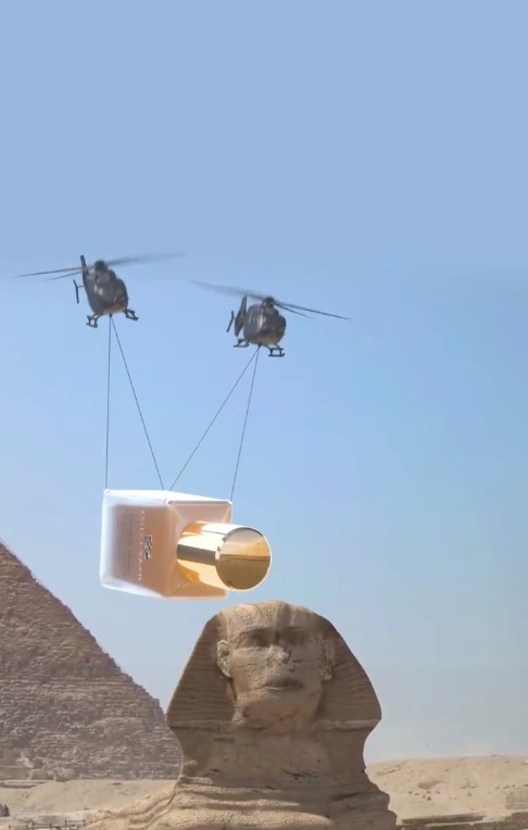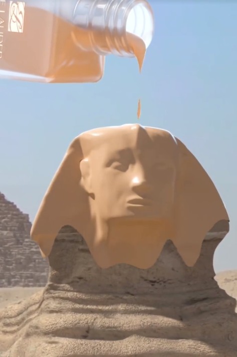 数字内容创意团队低聚体DIGIT为雅诗兰黛打造的CGI创意视频《狮身人面像居然笑了?》成功爆火,凭借小成本撬动了大传播效果:20s视频全网曝光过亿,全媒体播放量1500w+,小红书点赞9W+、评论1w+,视频号转发点赞10w+、评论4000+,助力雅诗兰黛产品成功破圈,在业界引发了不小的讨论。为让CGI视频的创意核心更聚焦,团队精心选定埃及历经千年风沙的狮身人面像作为视觉承载主体,既有大众知名度,又有直观的视觉冲击力。选取埃及的狮身人面像作为承载主体,狮身人面像历经千年风沙与战火,面部残破不堪,视觉特性恰好能凸显雅诗兰黛明星单品DW粉底液的核心卖点——“无暇持妆力”,粉底液完善修复狮身人面像的面部瑕疵,瞬间抹平沟壑一秒哑光,超强反差直观呈现卖点。