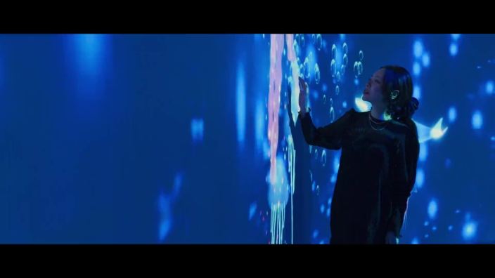 “山下”系列是SHOWLAB创作的具有中国美学的沉浸式影像空间作品。《山下》用金色线条模拟溪水,人们自由穿行在装置之间,被层层波浪温柔包裹着,地面波浪律动倒映着人的身影。《山下贰》则是将自然山水与起伏不定的山峦相结合,云雾缭绕在水墨之间,粒子流如水倾泻,营造出一个充满东方禅意美学的意境空间。