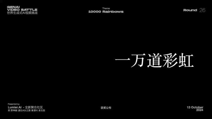 “一万道彩虹”是由中国美术学院AI中心发起的、以鼓励行业创作者为核心目标的长期共创活动,项目鼓励行业内外的创作者、研究者与爱好者共同探索AIGC在影像、叙事、装置、影像生成等方面的创意边界。活动中涌现出诸多优质实践案例,如《链接者之歌》创作者以“链接者”的视角融合媒介考古、科幻设想与田野调查,探讨人类、非人生命与人工智能之间的关系网络;《颅内花园》团队通过三维扫描、点云数据与AI图像生成等新兴技术,构建出一个如梦似幻的“内心景观”,呈现记忆在脑内生成、变异与重组的动态过程等。 作为一个中长期推进的AIGC共创项目,“一万道彩虹”不仅是一个展现创意的创作舞台,更是汇集国内最活跃AIGC社群的交流平台。中国美术学院AI中心希望通过这一项目进一步推动AIGC领域的探索与发展,激发更多创作者运用AI工具进行多元创意表达,共同创造未来的艺术形式。