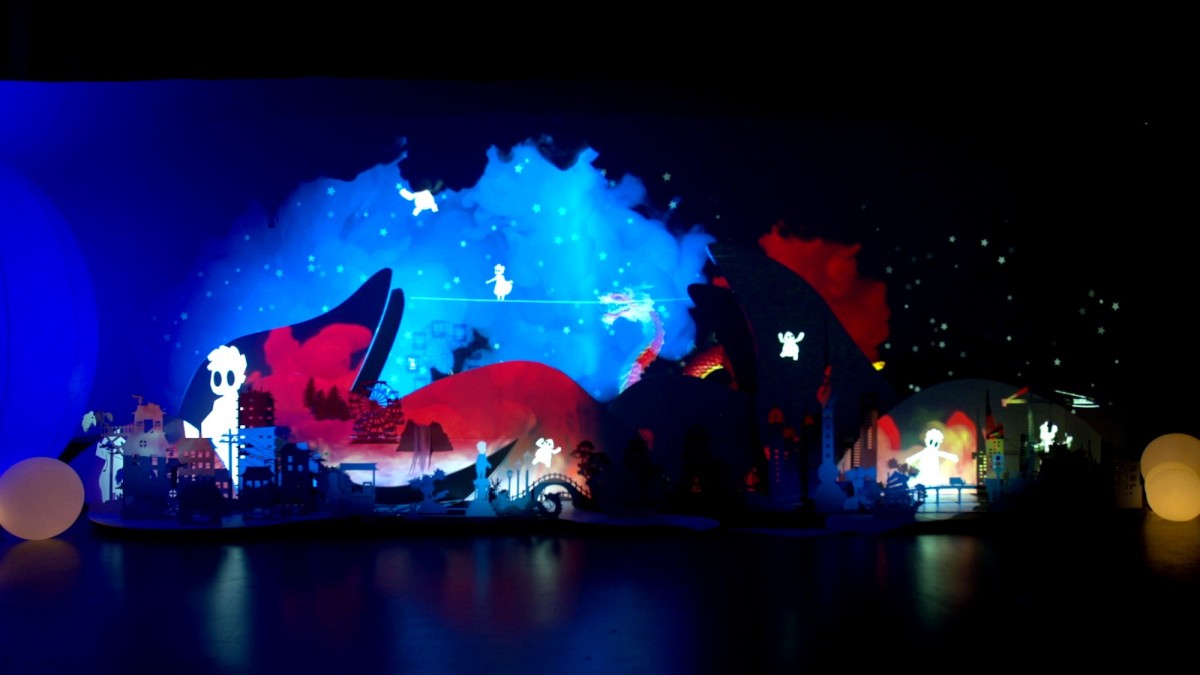 The 'paper art' scenography serves as canvas for an animated short video. It was premiered at the Museum of Modern Art, Shanghai on January 25th 2018, as part of the "This is Québec Event.