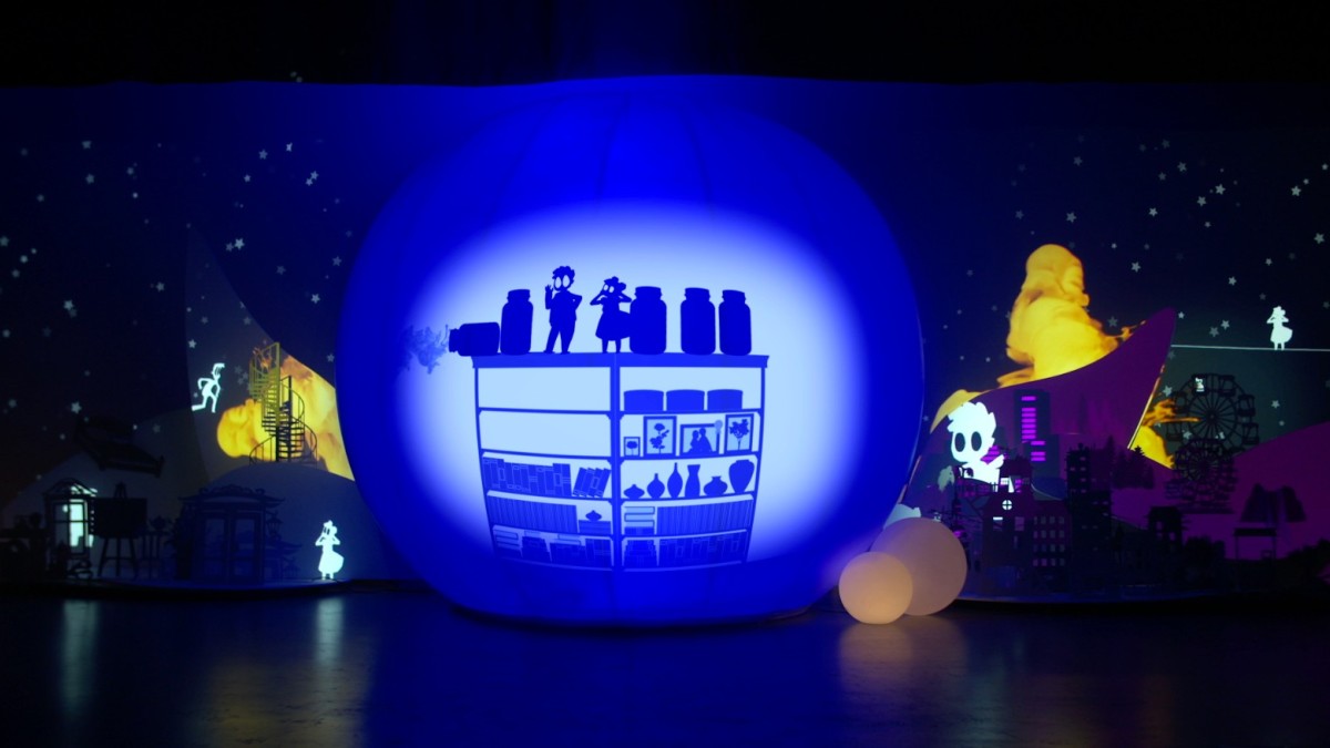 A media mix of projection mapping, lighting, special effects and 10.1 sound brings the story out of the screen into the space.