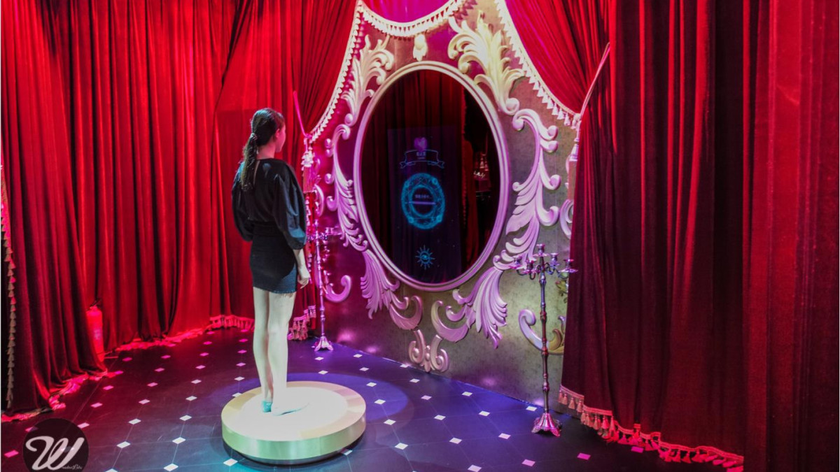 这是一个懂得察眼观色的的魔镜,观众站在镜子面前,魔镜就会捕捉面部表情识别情绪,根据观众不同情绪在镜子中呈现不同画面。