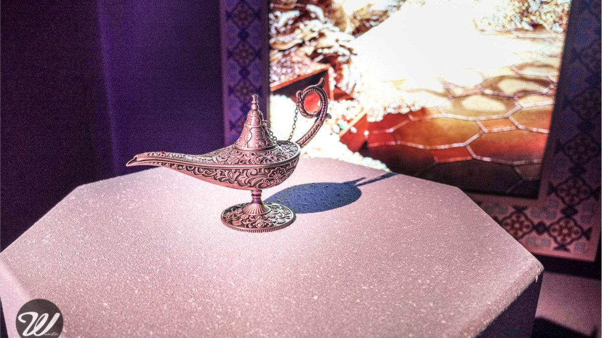 玩疯了神灯代表了淘宝,在此区域观众仿佛进入了阿拉丁神灯所进入的宝藏洞穴,观众用手摩擦神灯,灯神就会出现在屏幕 并根据用户进入展馆前录入的个人信息判断消费自由度。
