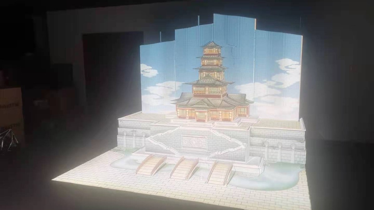 本项目由天津总公司、加拿大蒙特利尔分中心和长三角地区盐城分中心共同设计制作。采用公司自主知识产权研发的“国家数字内容服务贸易平台”完成该项目的后期协同制作,大大减少了制作时长和提高工作效率。三方设计团队共同设计的裸眼3D视频内容,以建筑为幕布,视频充分考虑了建筑特色。给人视觉、声音的享受,令人留恋往返。为当地引流了大量观众观赏。