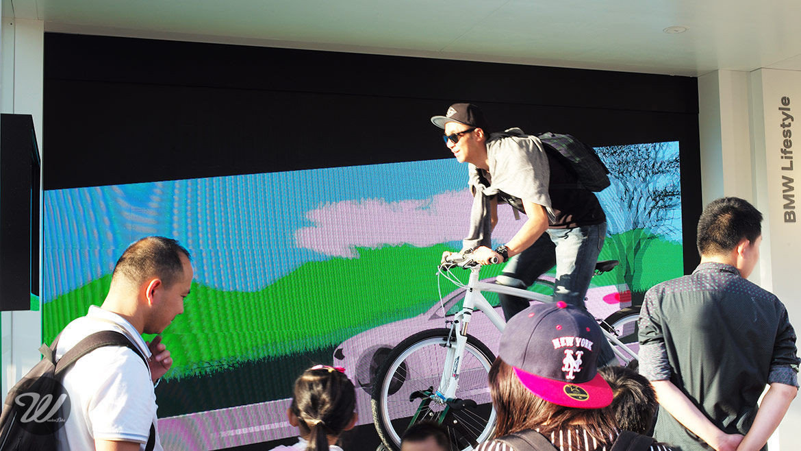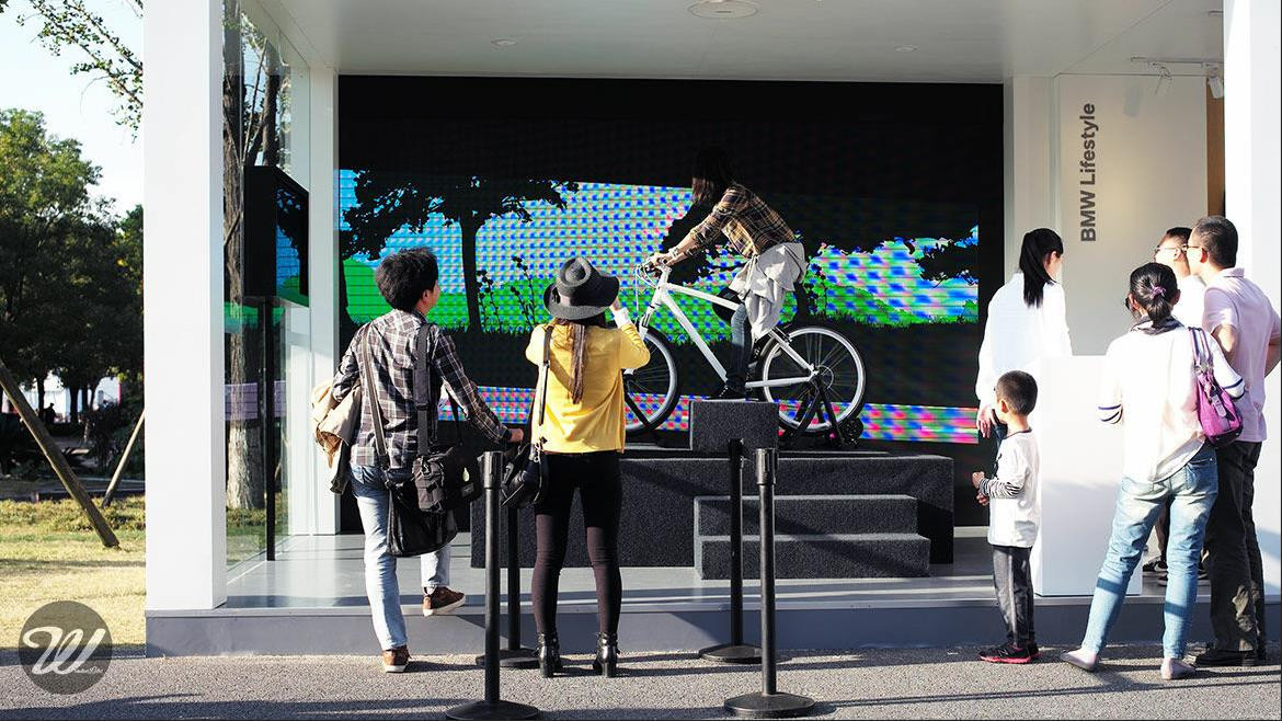 Wonderlabs 为此次活动制作了以BMW自行车为主题的互动装置, 来宾在位于黄浦江边的BMW Lifestyle体验馆可以体验到模拟BMW自行车的上下坡骑行感受。