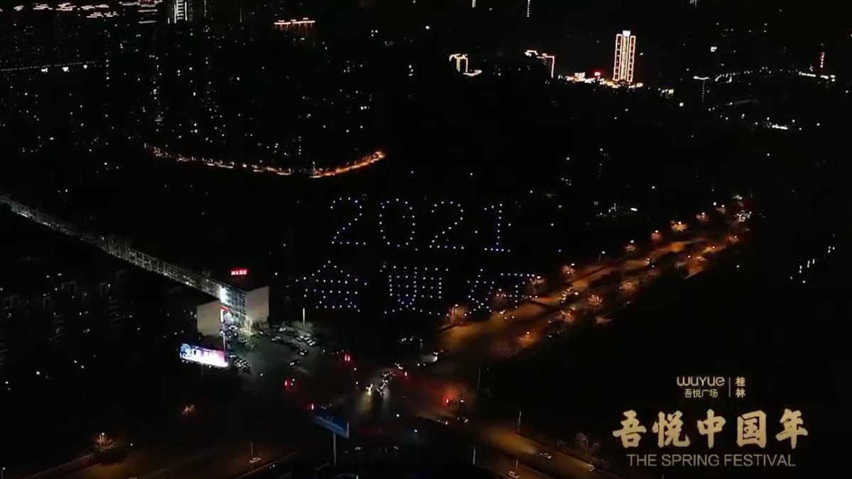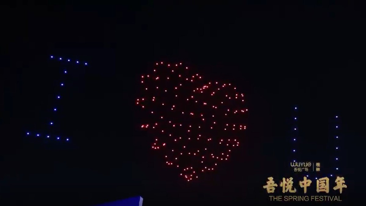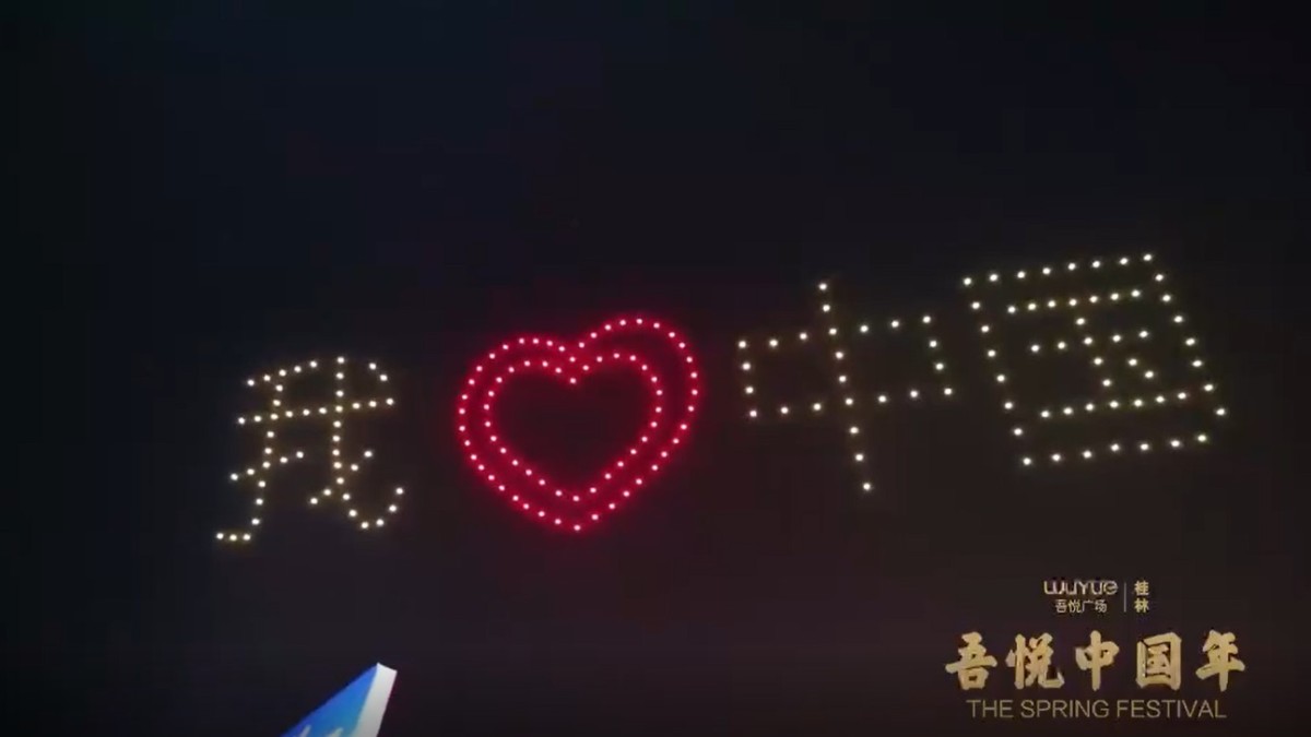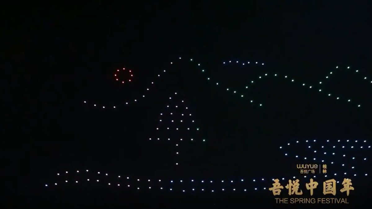 广西桂林吾悦广场,定制无人机编队灯光秀,桂林山水甲天下,表演完美结束!