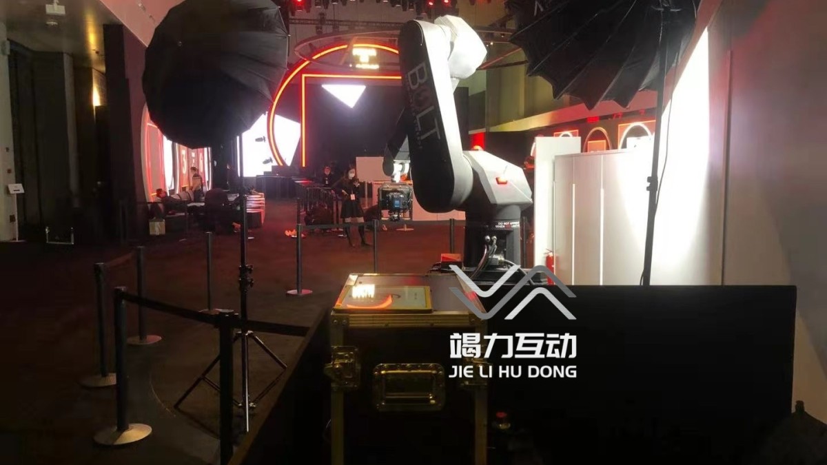 机械臂互动:嘉宾在拍摄区域摆设动作,机械臂运动轨迹,60秒后即可获取视频,操作简单,明星大片的感觉。