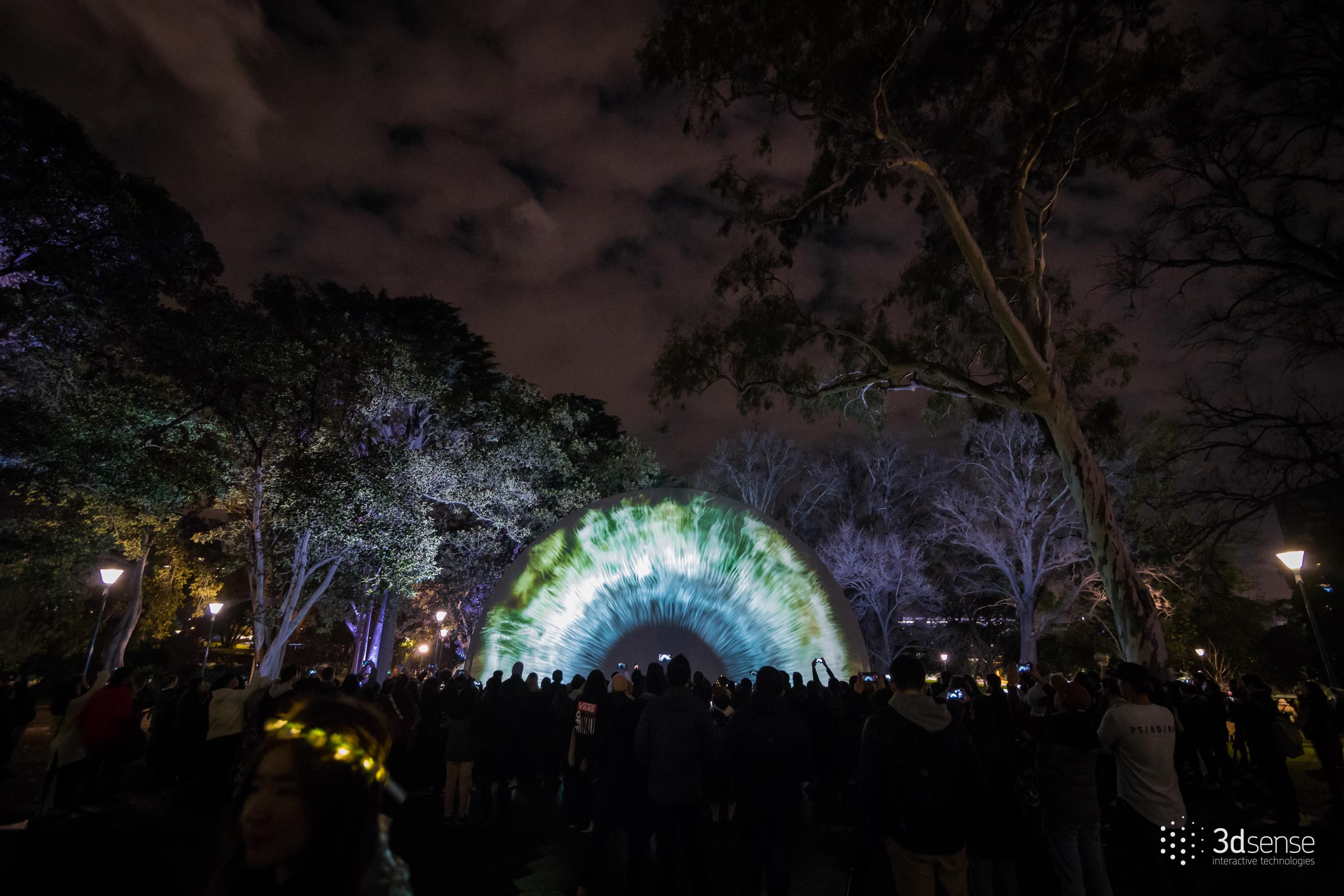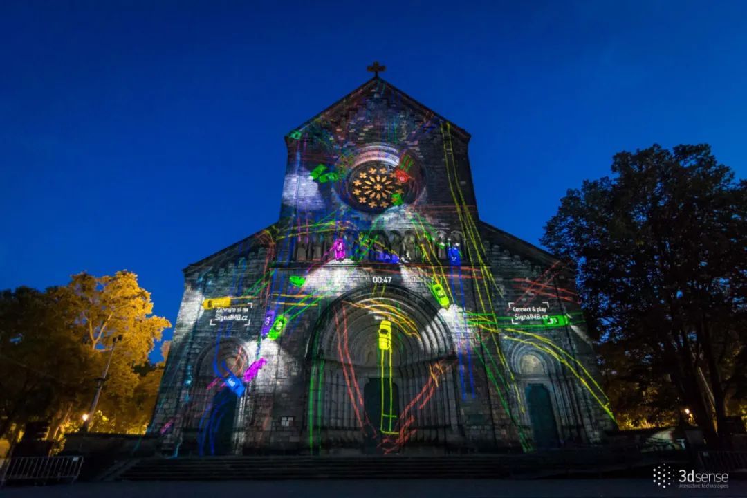 其投影内容由观众通过一个游戏应用程序实时操控和塑造。