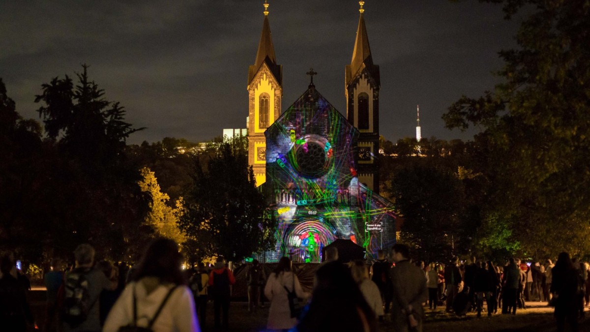 团队在圣西里尔与梅特迪乌斯教堂的外墙上,