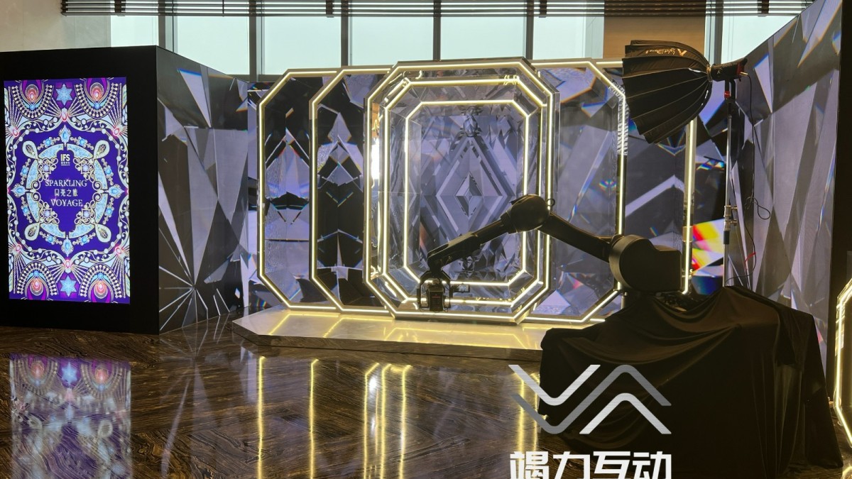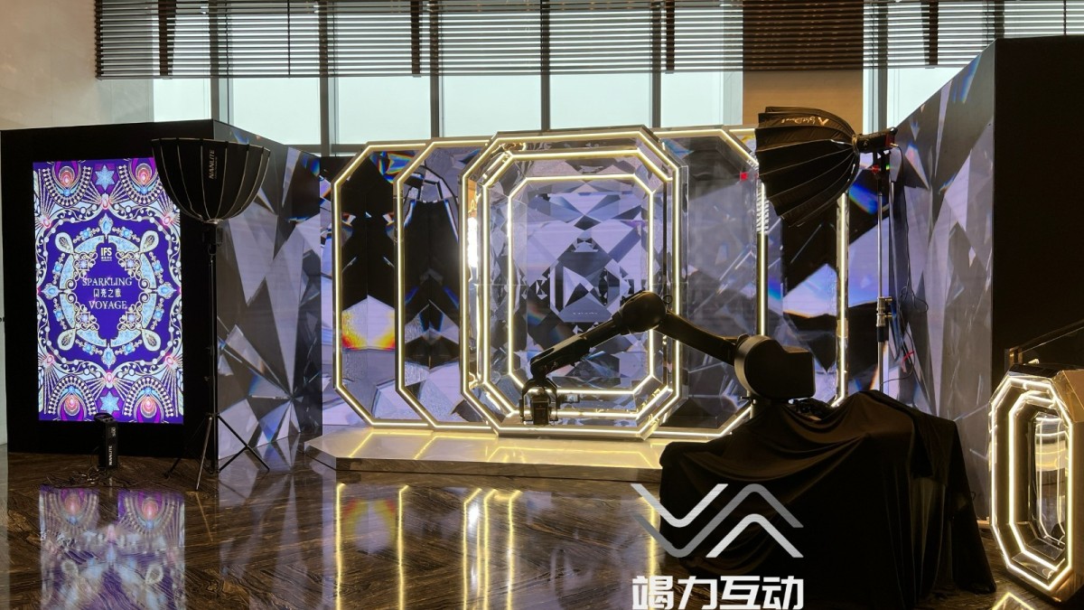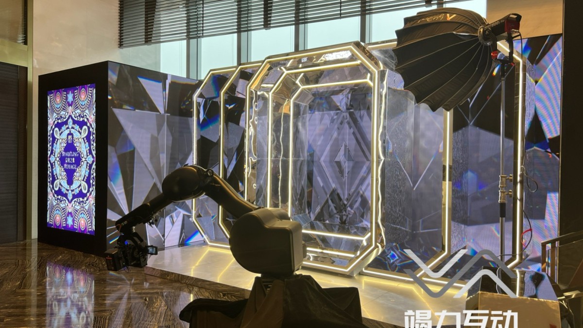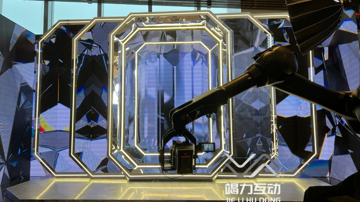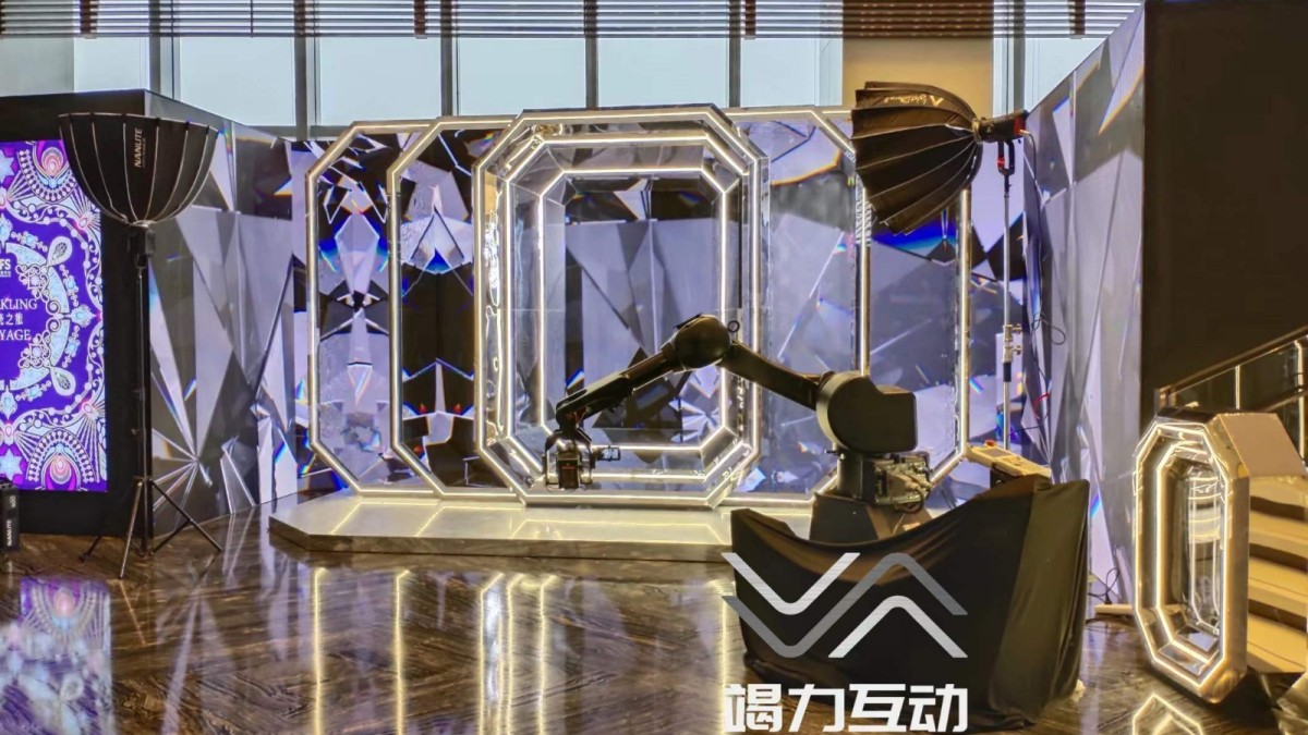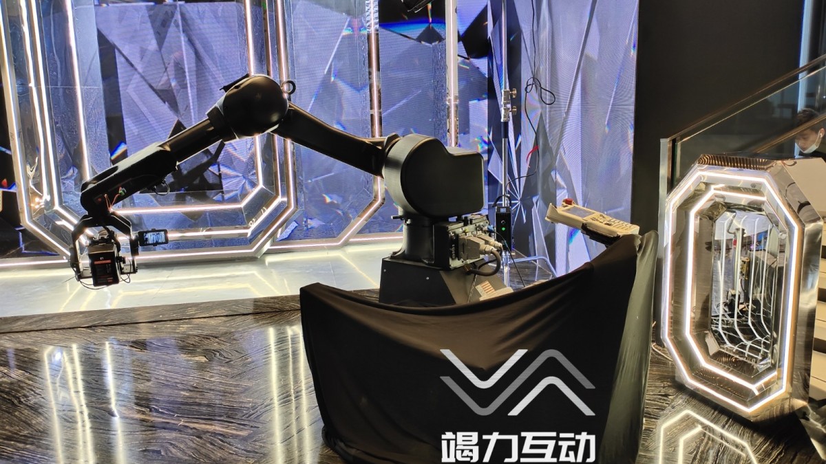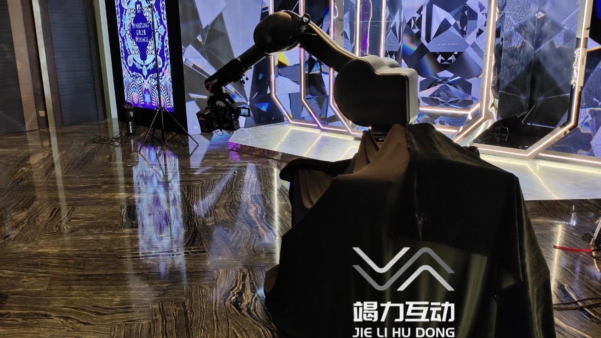 机械臂互动:嘉宾在拍摄区域摆设动作,机械臂运动轨迹,