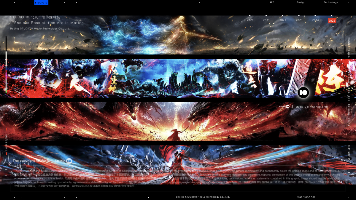 北京STUDIO10是一家专注于艺术设计与多元数字科技融合的新媒体数字艺术创作公司。自成立以来,我们始终以多维度创新为驱动力,打破学科边界,跨越空间、行为、影像、声音等多个领域,构建全新的感知方式与深度沉浸的应用场景。
